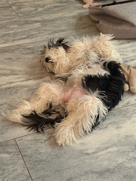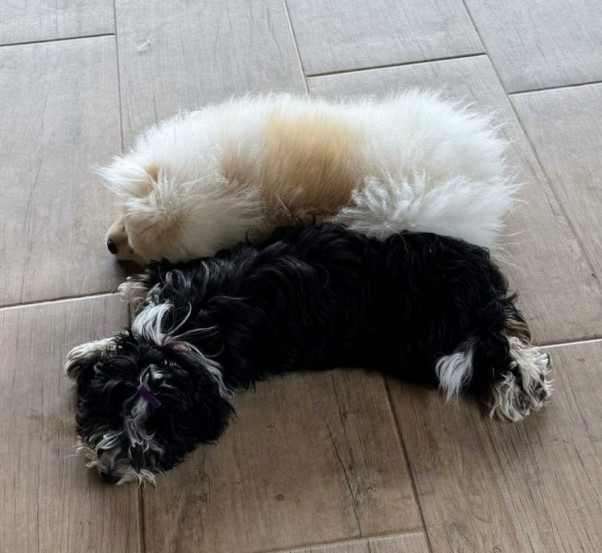 einen kleinen Hausfreund, ein Pomeranian Spitz in ihrem Alter, der mit im Haus wohnt. Und zu meiner Überraschung lässt sich die kleine, wilde Eleny völlig entspannt von ihrem Frauchen die Pfoten ausrasieren. Da habe ich wirklich gestaunt.