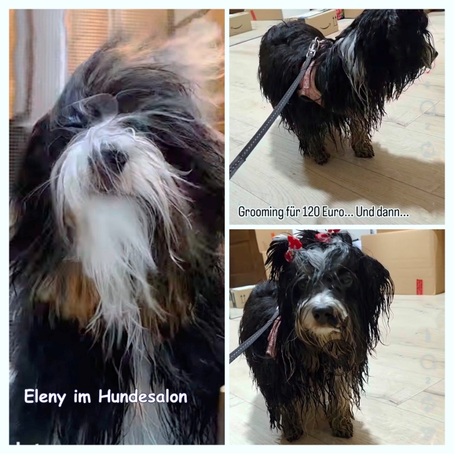 Eleny hatte ein paar Filzknoten, schreibt ihr Frauchen. Typisch für jetzt 9 Monate alte Havaneser, die langsam in den Fellwechsel kommen. Deshalb bekam Eleny ihr